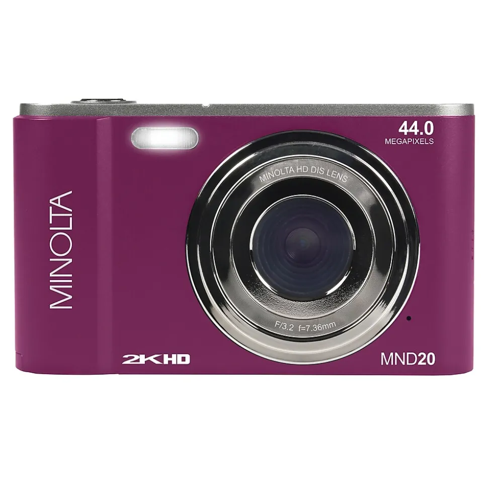 Preserve the moment with Minolta’s Magenta MND20 Digital Camera and its high-resolution photos that are suitable for cropping or enlarging thanks to the 44 MP photo resolution. And its 2.7K Quad HD video gives your video greater vividness and clarity than standard-definition video. Featuring a compact size with anti-shake stabilization, you can easily compose shots and review photos with the 2.9-in. LCD monitor. Capture close-up details or shoot from a distance with the 16x digital zoom lens. Intelligent scene modes and features like smile capture and photo burst make shooting the ideal shot easy and fun.