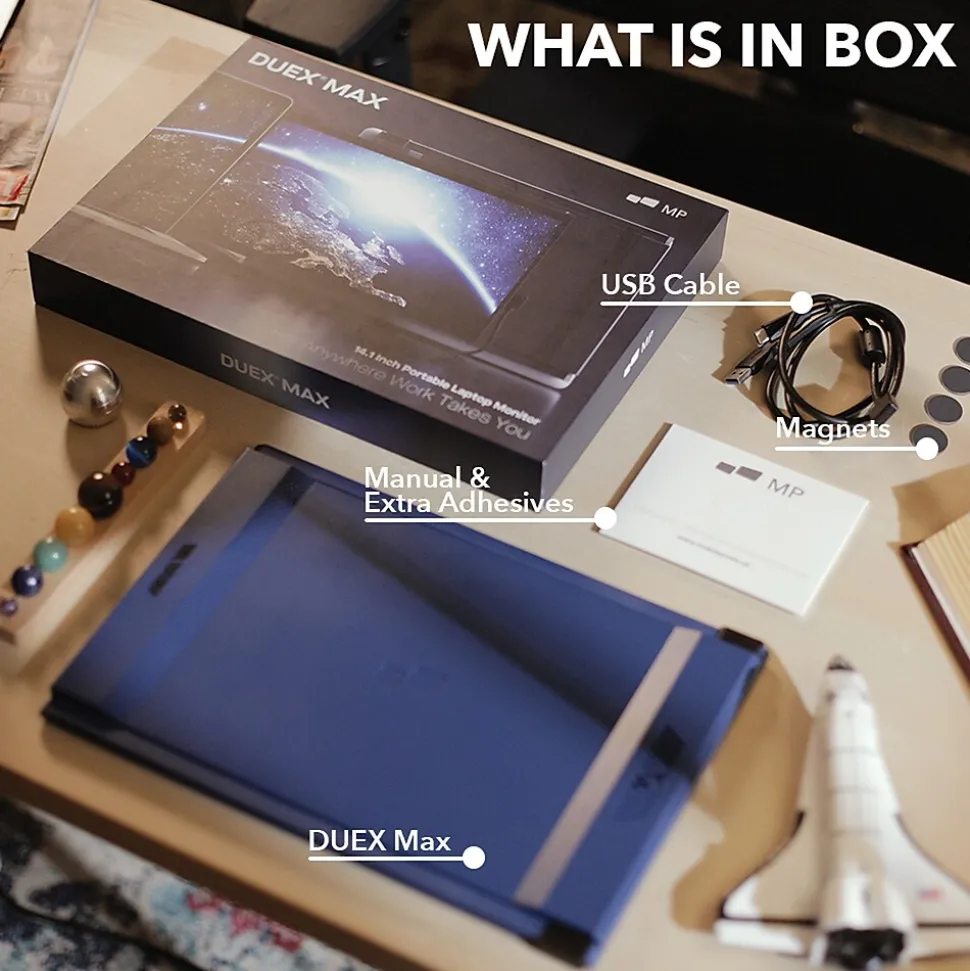 - Includes USB Type-C cable, HDMI cable, 8 pieces of nano-adhesive tape, 4 pieces of magnetic adhesive, and quick-start guide