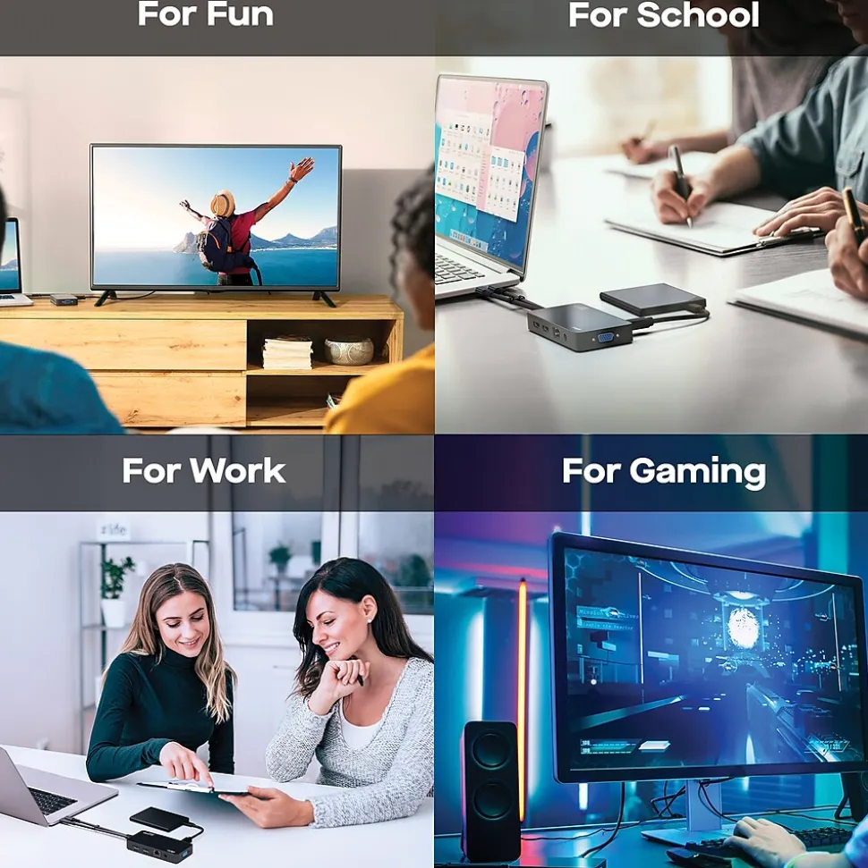 - Also supports VGA and HDMI 4K; compatible with RJ45 and audio 3.5 mm