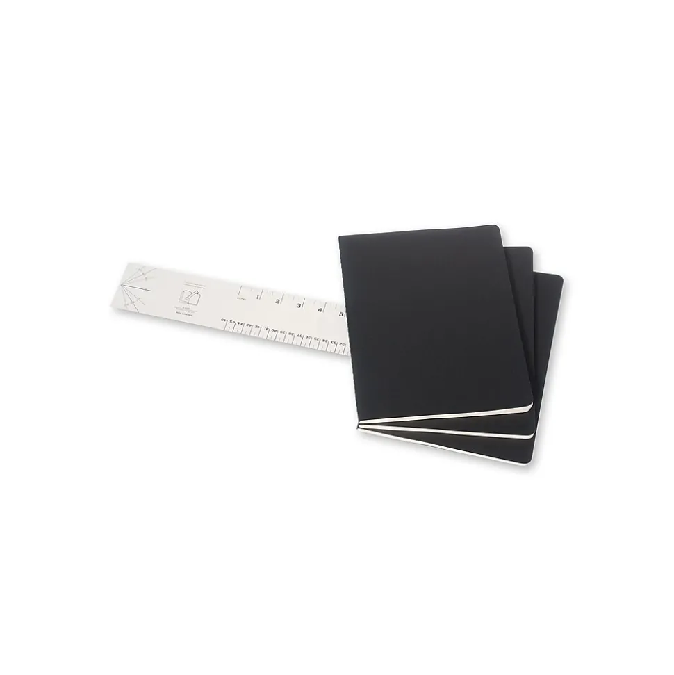 Jot down lists, ideas, and other notes with these extra-large black soft cover ruled journals. The soft covers and compact size make it easy to store these journals in a purse or backpack, while the black coloring adds a sophisticated appearance. These Moleskine Cahier soft cover journals come in a set of three and have lightly printed ruling to guide writing while ensuring words stand out for easy readability.