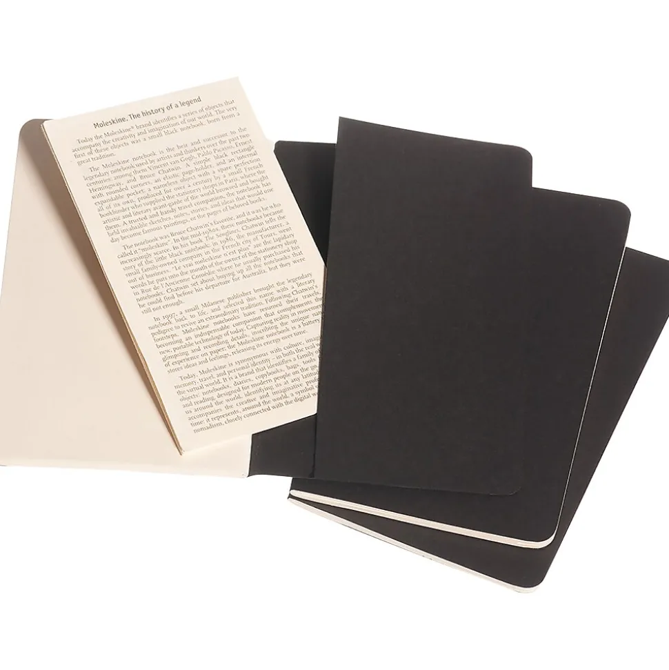 Draw landscapes and renderings in these Cahier journals. Plain pages create a blank canvas ready for a variety of uses, and visible stitching on the spine creates a handcrafted look. This 3-pack of Moleskine Cahier Pocket black journals has 16 detachable sheets for cleanly and quickly sharing notes, and the back pockets provide space to stick cards, mementos, and other small items.