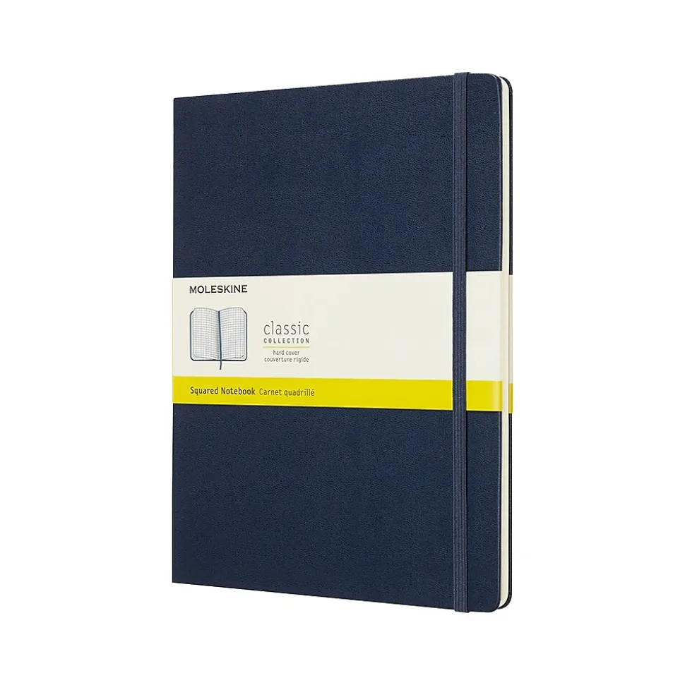 Create scaled graphs and write down important reminders in this classic large notebook. The hard cover protects pages from spills and unwanted marks, while the rounded corners help prevent snags. A ribbon is attached, offering quick access to marked pages. This Moleskine Classic sapphire blue notebook has an expandable back pocket for storing loose papers and small accessories, and the elastic closure provides privacy and secures contents.