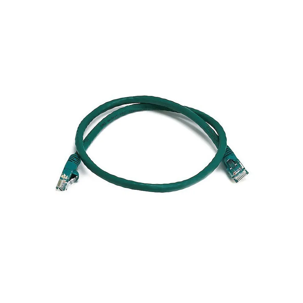 Monoprice® 2′ Cat6 UTP Ethernet network cable with a data transfer speed of 550 MHz has 50 micrometer gold plated contacts for enhanced conductivity. Cable in green color has snagless strain relief boots and offers high performance.