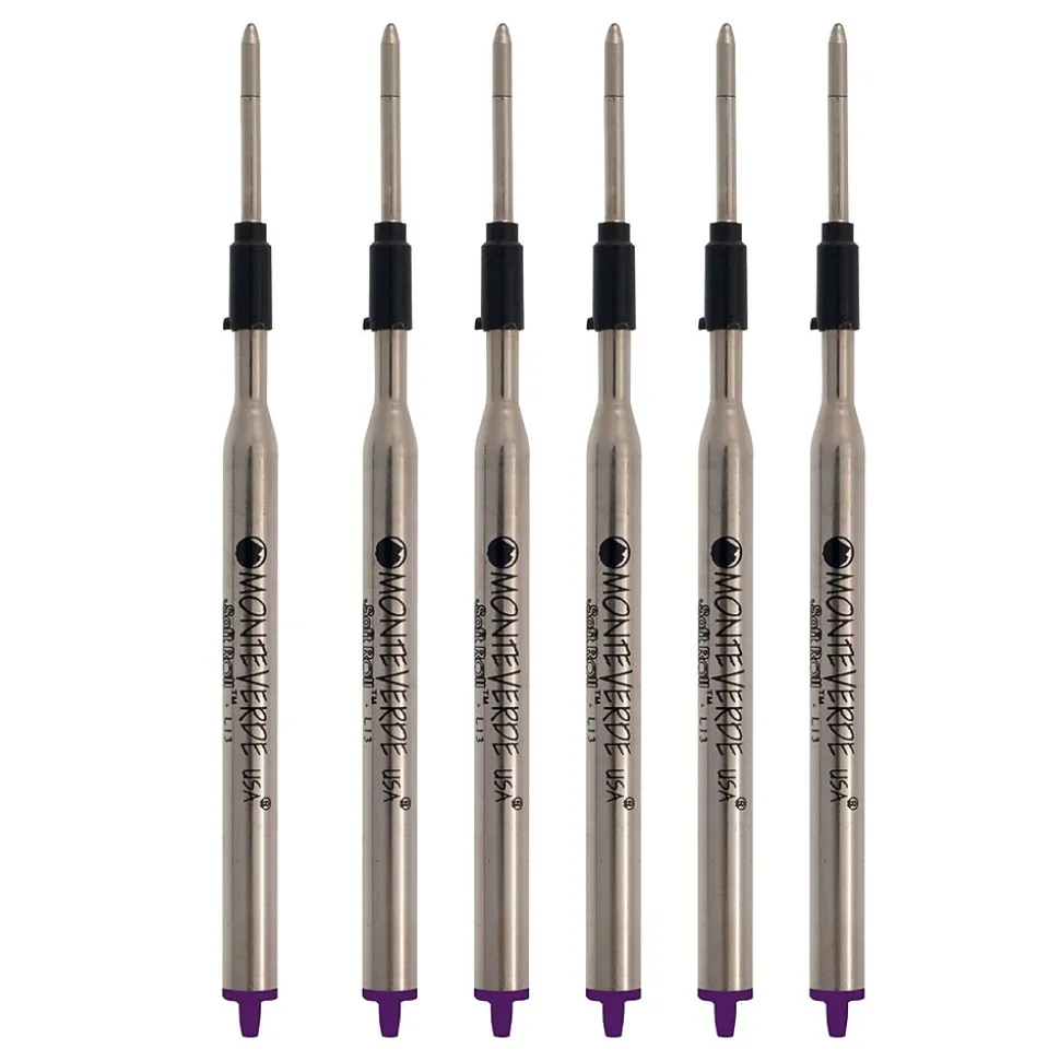 Monteverde® Soft roll™ Medium point ballpoint refill in purple for Lamy® ballpoint pens features low viscosity ink for easy flow. Refill bears a nickel plated brass tube and a medium point swiss tip, sold as 6/pack.