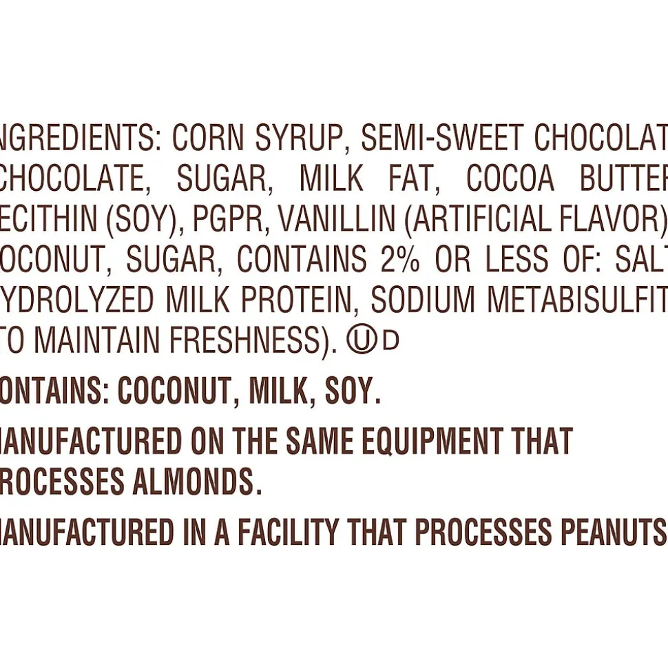 - Individually wrapped, kosher and gluten free coconut-filled dark chocolate candy bars inside a bulk candy box