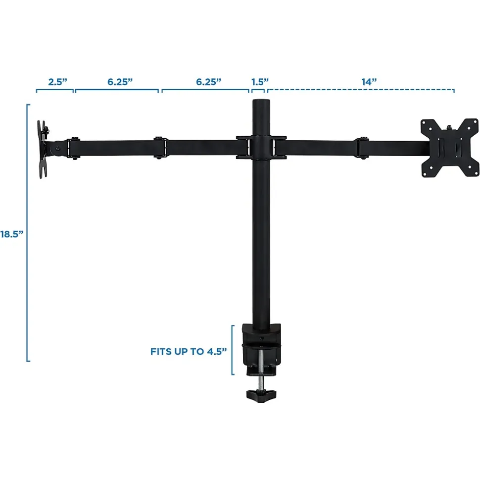 - STURDY SUPPORT and HIGH QUALITY CONSTRUCTION: Heavy-duty steel monitor mount can support to 27″ monitors for versatile use with a weight capacity of 22 lbs. per arm for a total capacity of 44 lbs.