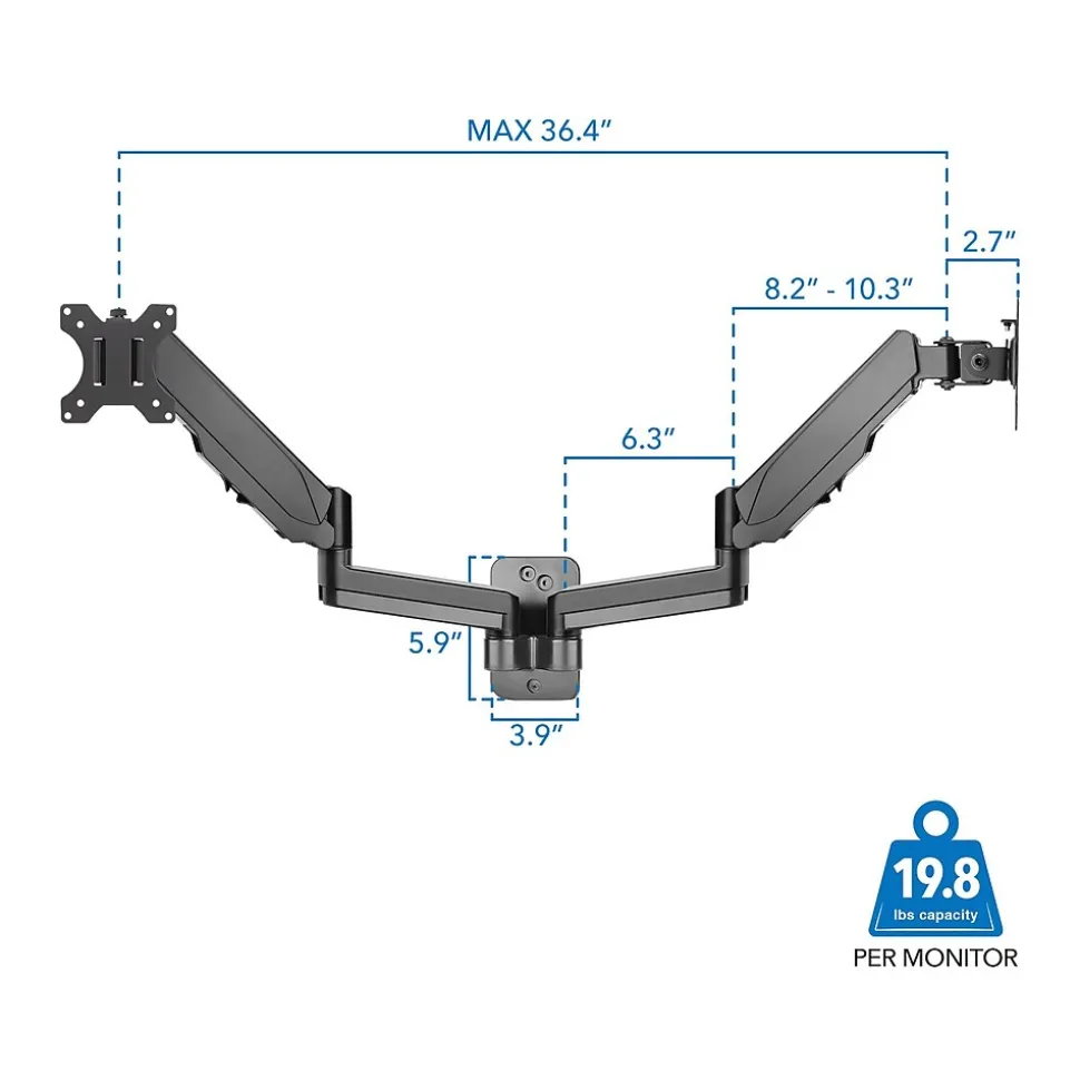 - Each arm has counterbalanced gas-spring arms for effortless height adjustment