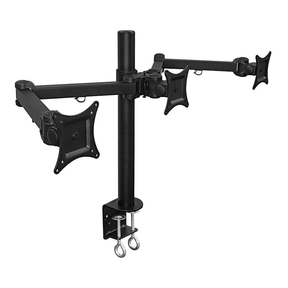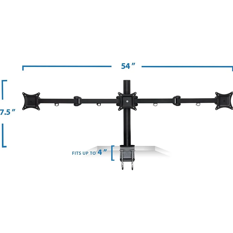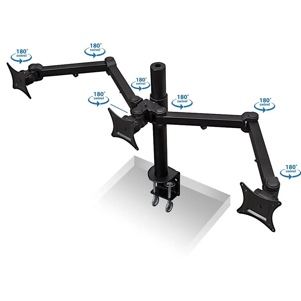 - Raise your monitor to a comfortable viewing height with this triple-monitor desk mount