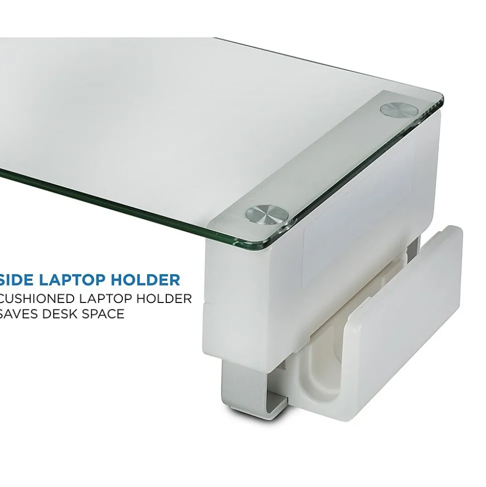 - GLASS MONITOR STAND – Desktop riser elevates your computer monitor