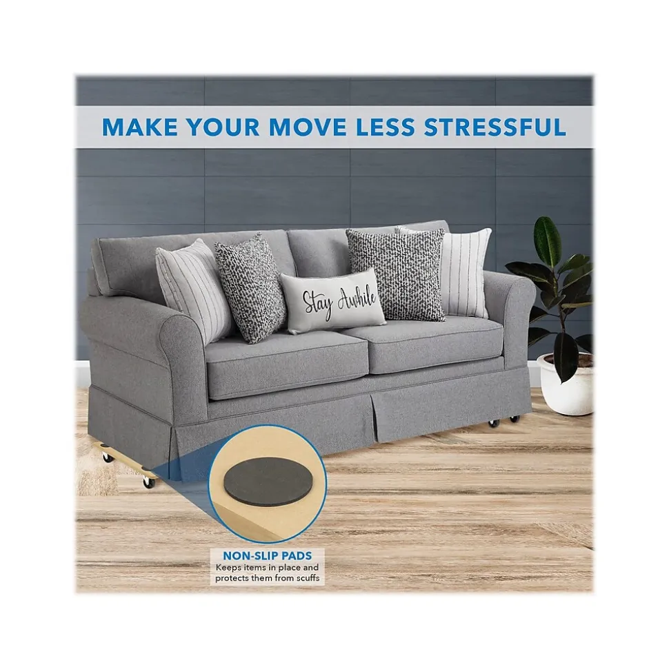 Anyone, young or old, can now move those heavy and awkwardly shaped furniture pieces with ease using the Mount-It! mover dolly. Reduce stress on your back, legs, arms, and neck since you don’t need to lift vertically anymore. Since the dolly is only 4.25″ off the ground, you can easily slip those heavier items on top. Whether you’re wheeling furniture over hardwood, carpet, or concrete, this platform dolly evenly stabilizes the weight load to ensure the wheels do not dig into the ground. The anti-slip rubber corners hold each item firmly in place, so you don’t accidentally push it off the dolly while moving. Pull the dolly out of the box, and it’s ready to make your life easier. When you’re done for the day, just carry the flat dolly with its built-in handle, and pack it away for future use.
