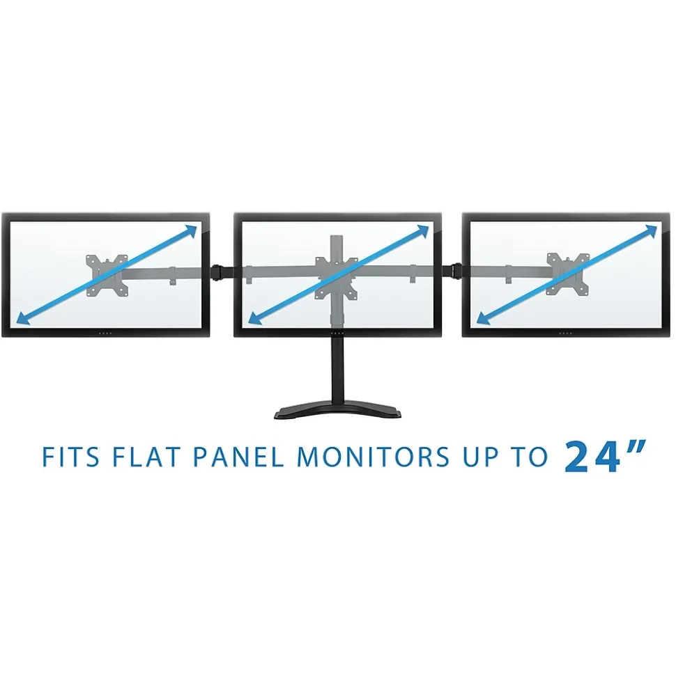 - EASY INSTALLATION: Triple monitor mount comes with all mounting hardware, tools, and instructions necessary for assembly. Detachable VESA plates are mounted to the back of the monitors, and re-attached with a single bolt. Non-skid free stand sits atop any desktop. See instructional video for additional tips on functionality and assembly.