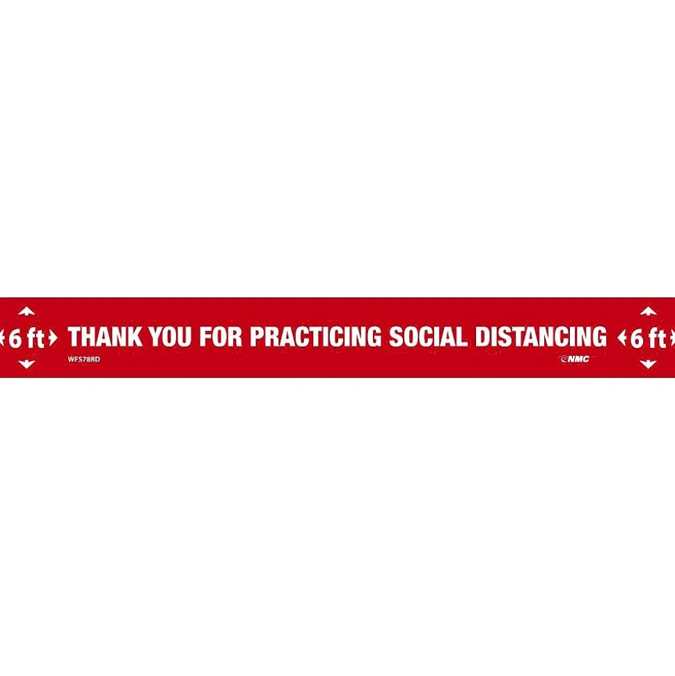 - Floor sign with “Thank You for Practicing Social Distancing 6 ft” message