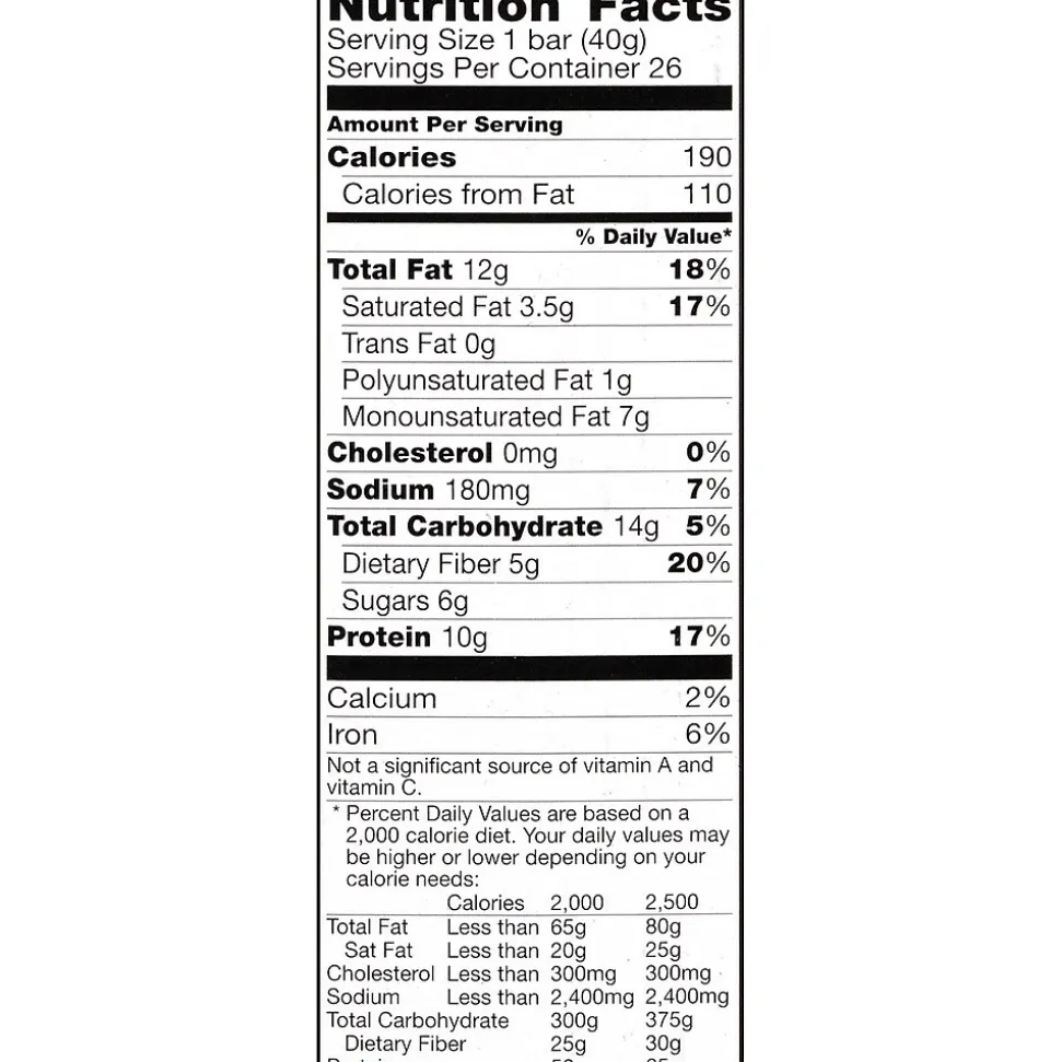 - Serving size: one bar