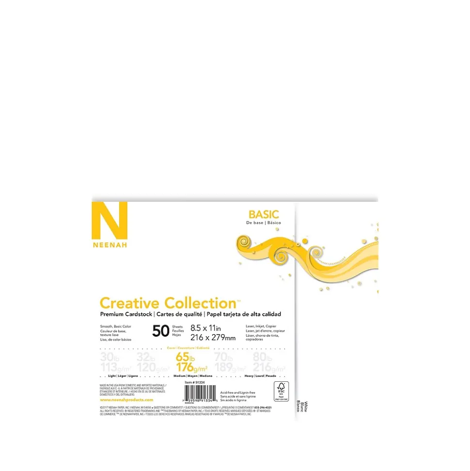 Stock your office print station with this premium-grade white cardstock. The 65 lb. paper offers a heavy backdrop that doesn’t easily fold and crumble, while the matte finish seamlessly accommodates different types of inks without bleeding. This Neenah Paper Creative Collection Basics 8.5″ x 11″ white cardstock exceeds FSC standards and is made of responsibly-sourced materials for your peace of mind.