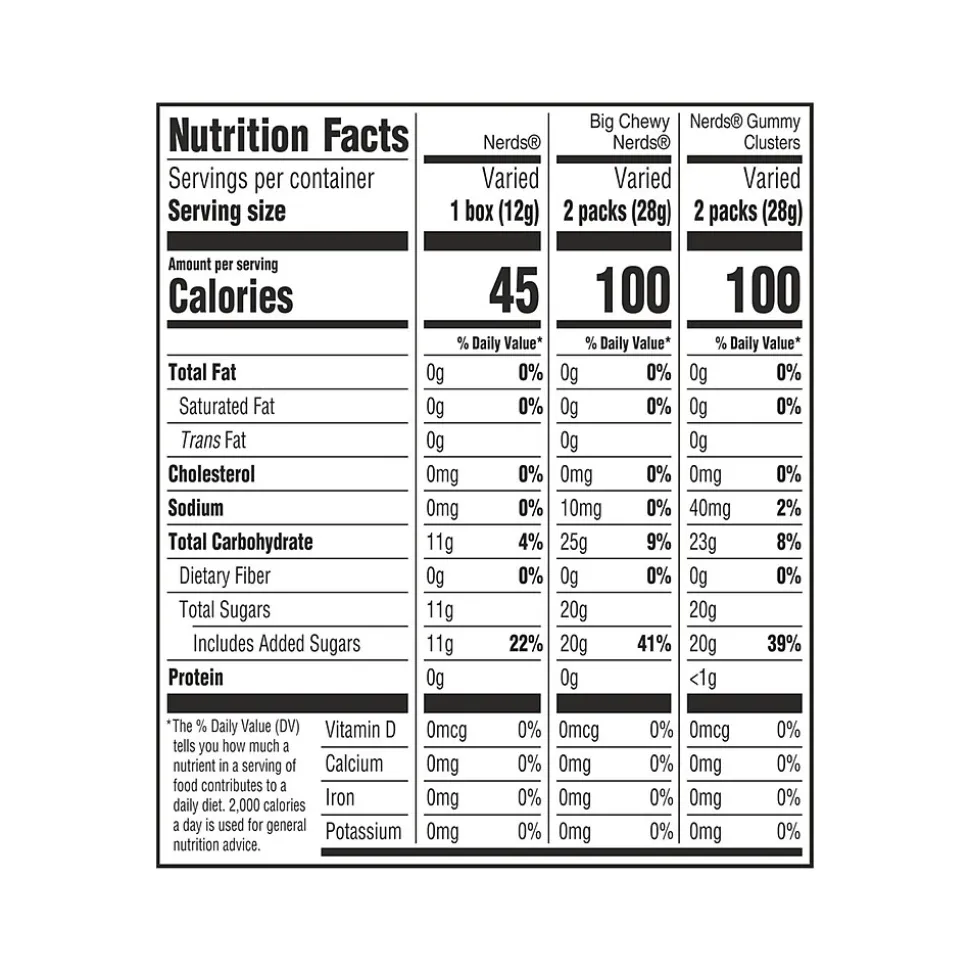 - Assortment includes: Nerds Gummy Clusters, Big Chewy Nerds, and Classic Nerds