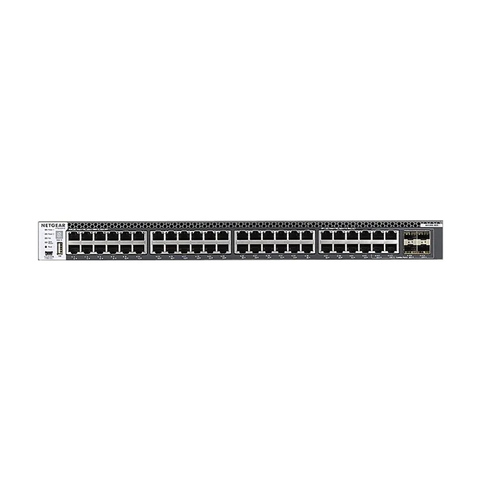 The Netgear M4300-48X switch delivers L2/L3/L4 and IPv4/IPv6 cost-effective services for mid-enterprise edge and SMB core deployments with unrivaled ease of use. Nonstop forwarding (NSF) virtual chassis architecture provide advanced High Availability (HA) with hitless failover across the stack. Intelligent Netgear IGMP Plus multicast allows for scalable Pro AV installations at Layer 2 without the PIM complexity. Dual redundant, modular power supplies equipping full width models contribute to business continuity management. Layer 3 feature set includes static, dynamic and policy-based routing – as standard. The Netgear M4300 Switch Series is perfect for wireless access, unified communications and professional AV-over-IP installations. Netgear Intelligent Edge Switch solutions combine latest advances in hardware and software engineering for higher flexibility, lower complexity and stronger investment protection, at a high-value price point.