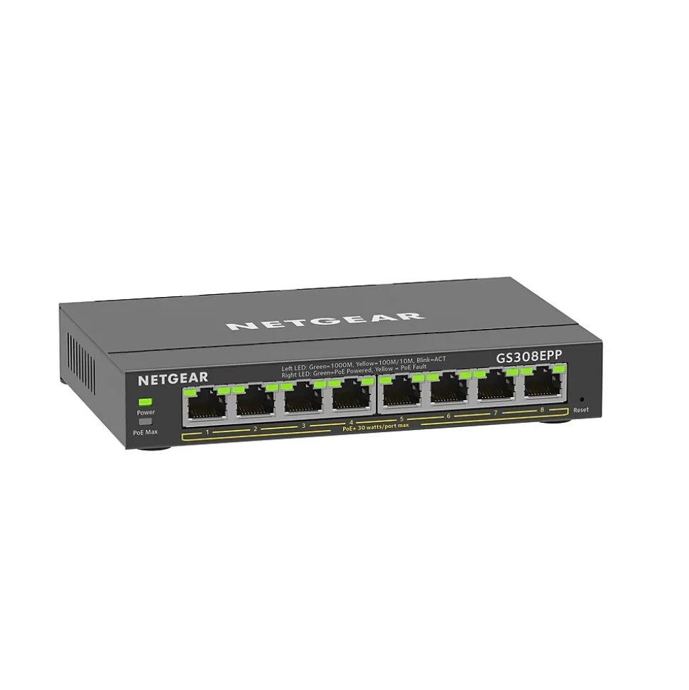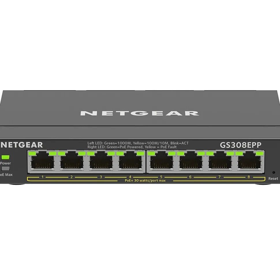 The Netgear Plus switch with PoE capability meets the growing needs of business networks by providing fundamental network features such as simplified VLANs, QoS setup, and IGMP snooping that will help optimize the performance of business networks. The Plus switch is a perfect upgrade from the plug-and-play unmanaged switch, delivering essential networking features at a very affordable price. This model supports Power-Over-Ethernet (PoE) and can power devices such as VOIP phones, surveillance IP cameras, wireless access points, and many other applications. This PoE+ gigabit Ethernet switch includes uninterruptible PoE to help optimize the performance and troubleshooting of business networks. The improved business-friendly GUI allows easy management and simple configuration. With the growing deployment of applications and an all-in-one solution, providing management and power to these applications would be perfect.