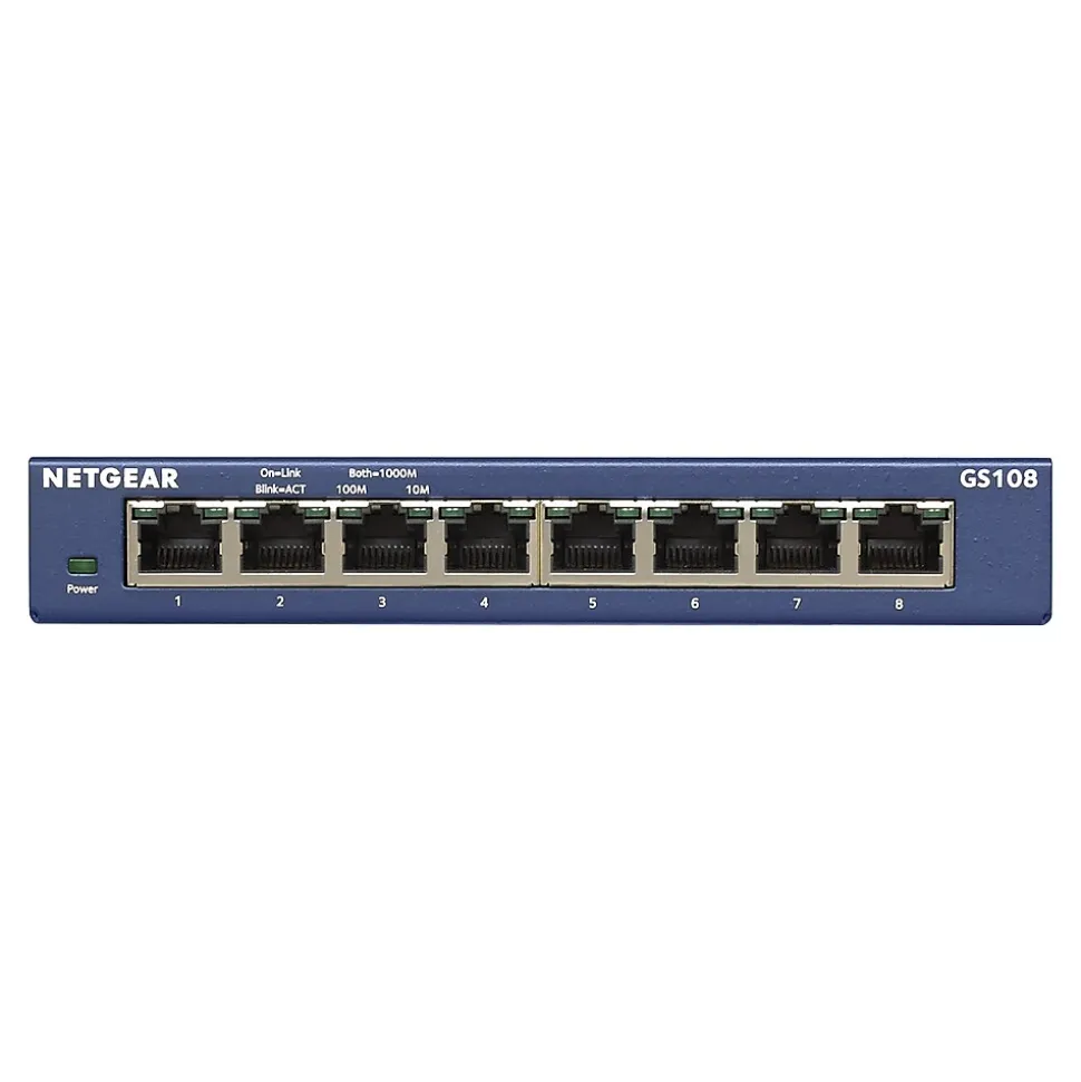 - The standards-based ProSAFE Gigabit switches senses and adjusts for network speed and cabling type automatically. Easily integrates into your existing Ethernet network – no matter if it is running at 10/100Mbps or Gigabit speed. Simple set up with no software or configuration needed. Front panel LEDs keep you informed of power status, link speed and link activities.