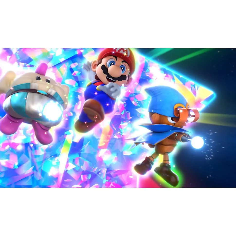 Team up with an oddball group of heroes to save Star Road and stop the troublemaking Smithy Gang in this Super Mario RPG game by Nintendo. This colorful RPG game has updated graphics and cinematics that add even more charm to the unexpected alliance between Mario, Bowser, Peach, and original characters Mallow and Geno. Enter (or revisit) this world of eccentric allies and offbeat enemies in an RPG for everyone. Jump through a colorful world and give attacks some extra oomph in battle! Explore the vibrant environments with your party and jump towards your next goal! Run into monsters to enter turn-based battles with your party of three. Press the button at the right time for a satisfying dose of extra damage or helpful guard.