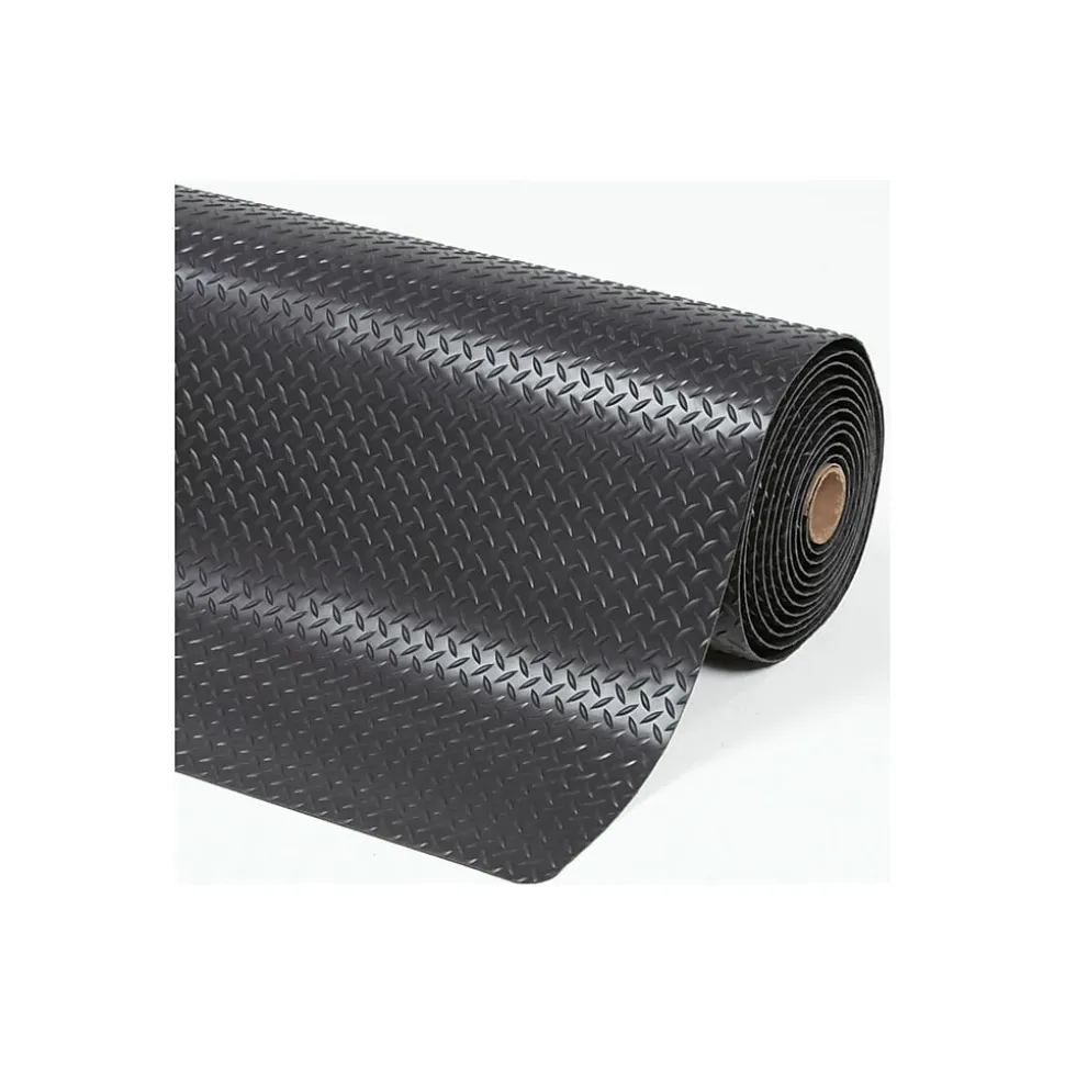 The NoTrax Cushion Trax anti-fatigue mat is engineered to meet the toughest requirements of today’s industrial applications and is particularly suited for multi-shift operations in dry work areas where the worker is standing for prolonged periods of time, such as workstations and assembly lines. The heavy-duty vinyl diamond-plate design provides nondirectional traction and is easy to clean. The top surface is combined with a dense closed-cell foam base utilizing NoTrax UniFusion technology. This virtually eliminates the possibility of delamination. This NoTrax laminate floor mat comes with RedStop, a uniquely engineered nonslip backing technology that eliminates the slipping and sliding on smooth flooring such as tile, wood, marble, and treated concrete. The sloped beveled edges reduce tripping hazards and allow easy access on and off the mat.