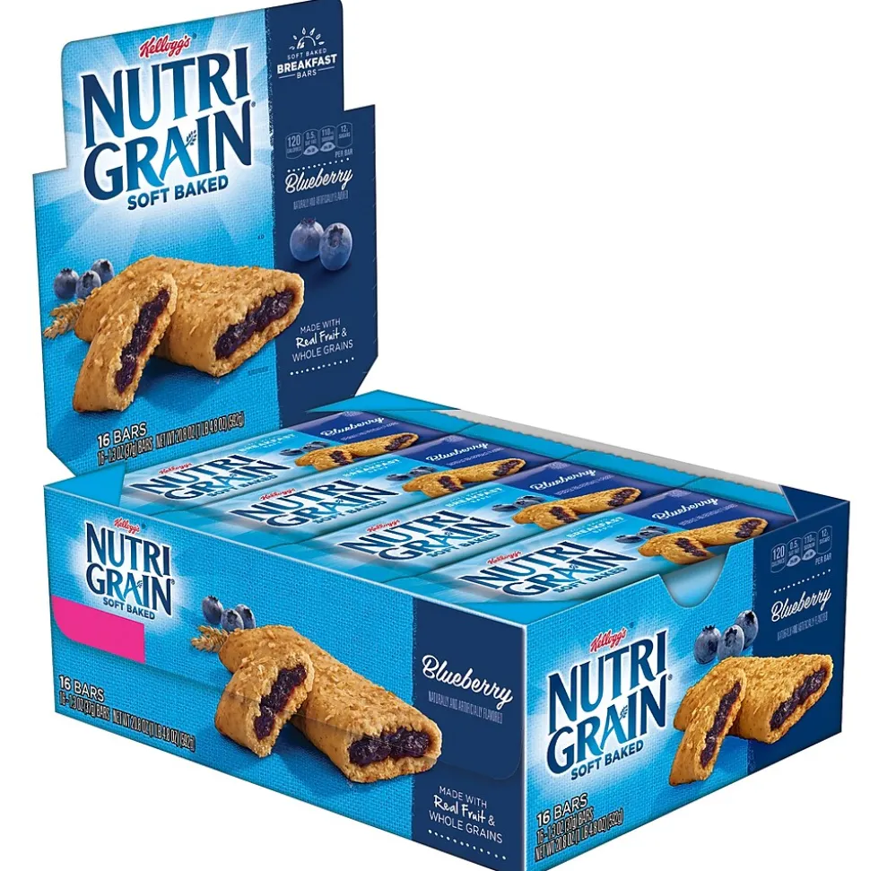Keep your break room or pantry stocked with these blueberry bars. Made from whole grains and soft baked for a chewy texture, these bars are a great light snack or quick breakfast option. These blueberry Nutri-Grain bars are a great snack to keep on hand for before or after practices, meetings, and more.