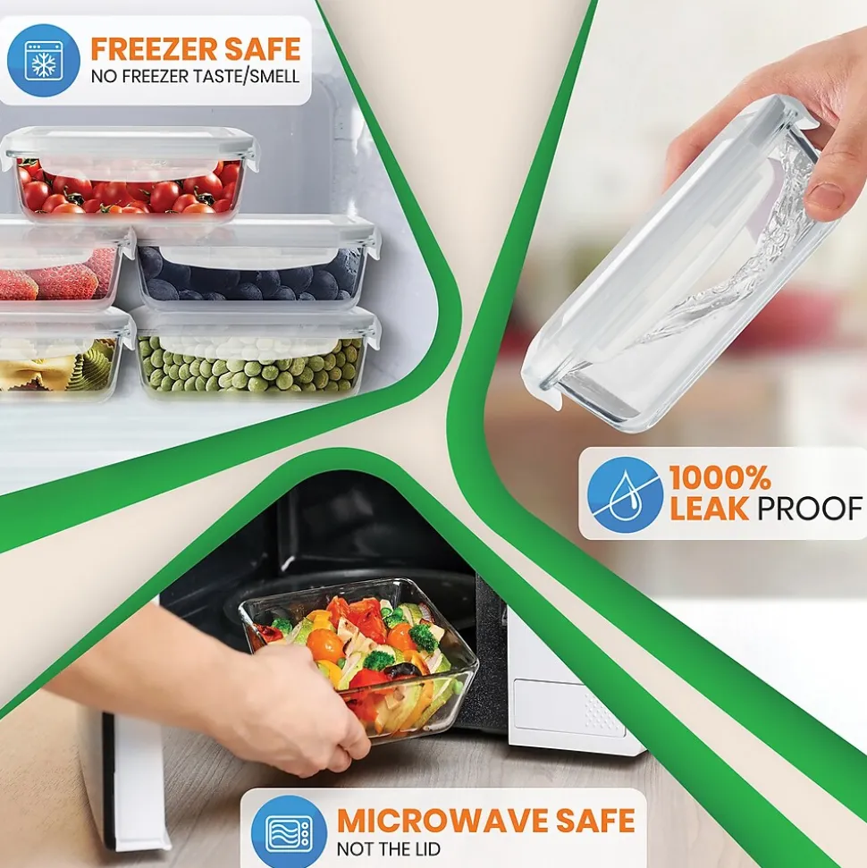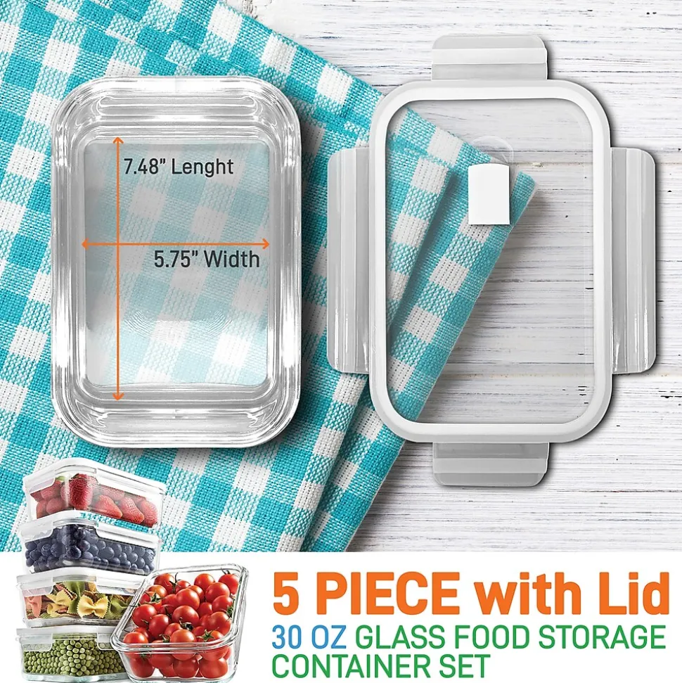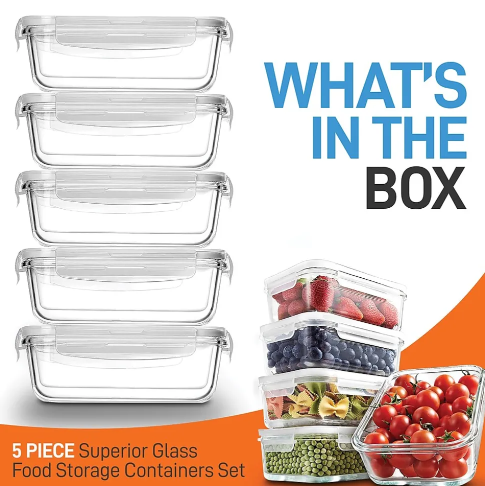 NutriChef Stackable Borosilicate Glass Food Storage Containers Set, 10-Piece (NCCLX5)