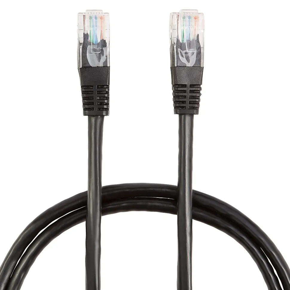 Connect high-speed office network devices with this Ethernet cable. The 14-foot length lets you connect switches, routers and servers from across the room, while the configuration offers data transfer speeds up to 10Gbps for fast performance. This NXT Technologies CAT-6 black Ethernet cable has RJ45 male connectors for efficient signal transfer between compatible devices.