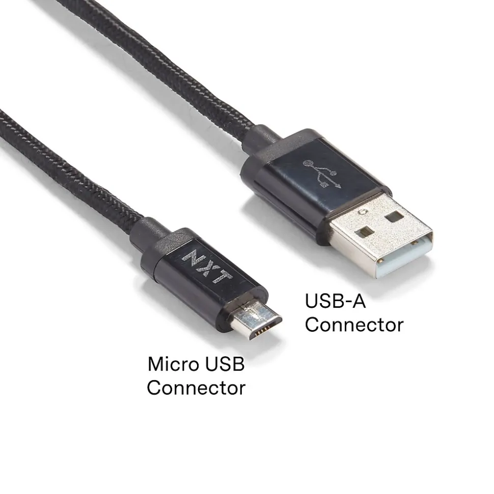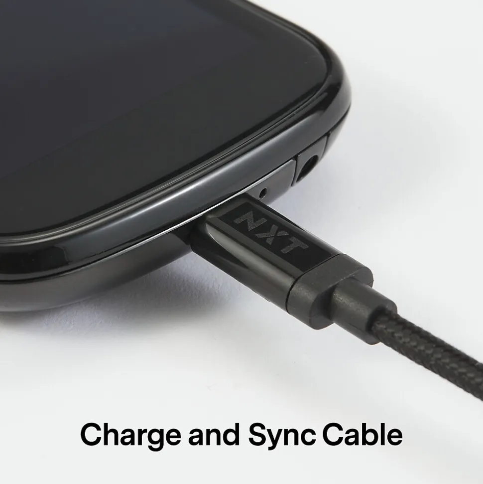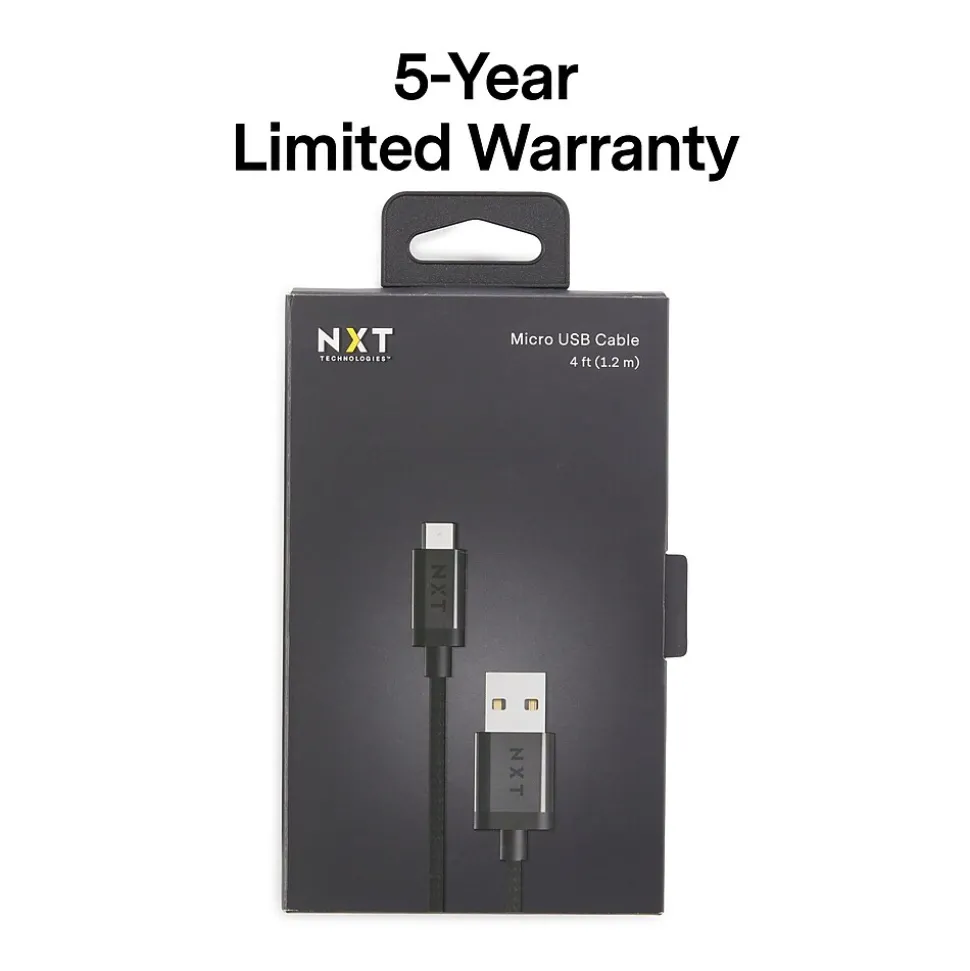 Depend on the durable braided construction of this Micro-USB cable for an uninterrupted connection. The 4-foot length delivers flexible placement in vehicle or offices for versatile use. This NXT Technologies™ Micro-USB cable features a strain-relief connection to easily withstand up to 10000 bend cycles.