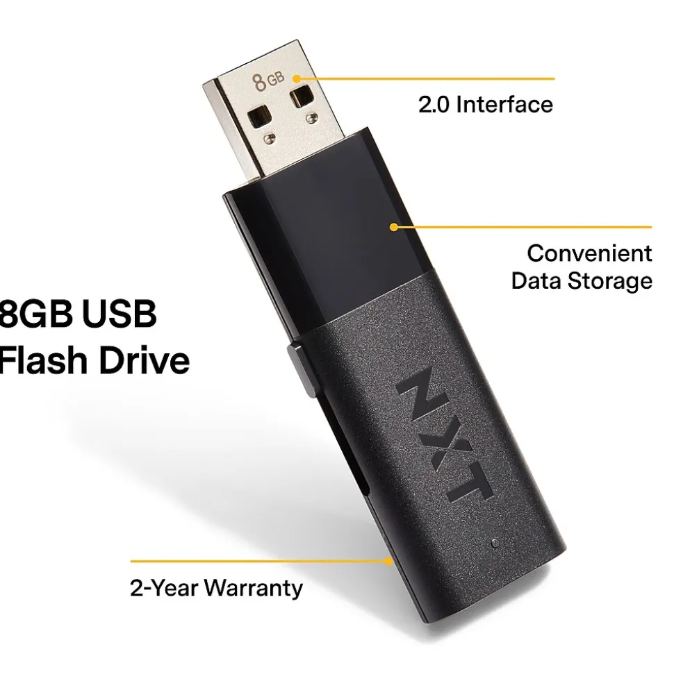 Bring critical files with you on business trips or to client meetings with this USB 2.0 flash drive. The retractable connector protects data from potential damage or loss, and a lanyard attachment offers convenient portability. Transfer data with confidence using the LED indicator light, which communicates when the device is in use. Featuring 8GB of storage, this NXT Technologies™ USB 2.0 flash drive helps you safely backed up files.