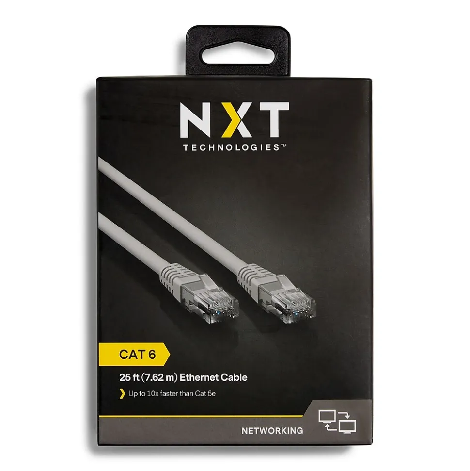 Ensure quality, loss-free data transmission with this CAT-6 network cable. The identical RJ45 terminals offer simple connection. This NXT Technologies CAT-6 network cable is 25 feet long, supporting flexible placement options in large office settings.