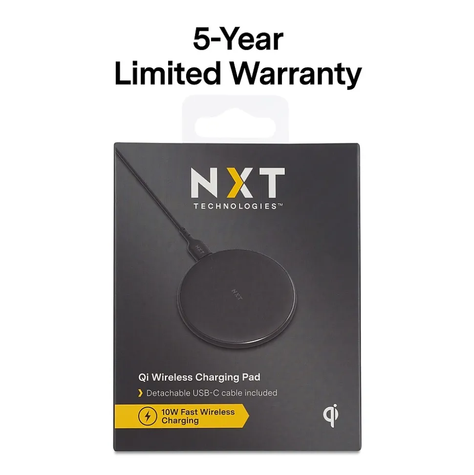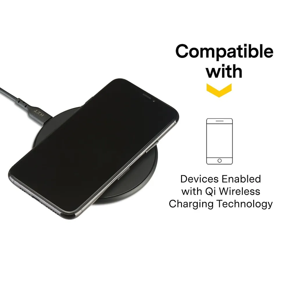 Keep a sleek and minimal charging solution within reach by using this wireless charging pad. An LED indicator illuminates when the detachable 6′ USB Type-A to USB Type-C cable and Quick Charge 2.0 AC adapter deliver power to your Qi-compatible device. This WPC-rated NXT Technologies™ wireless charging pad effectively interacts with cases that are less than 0.12″ thick.