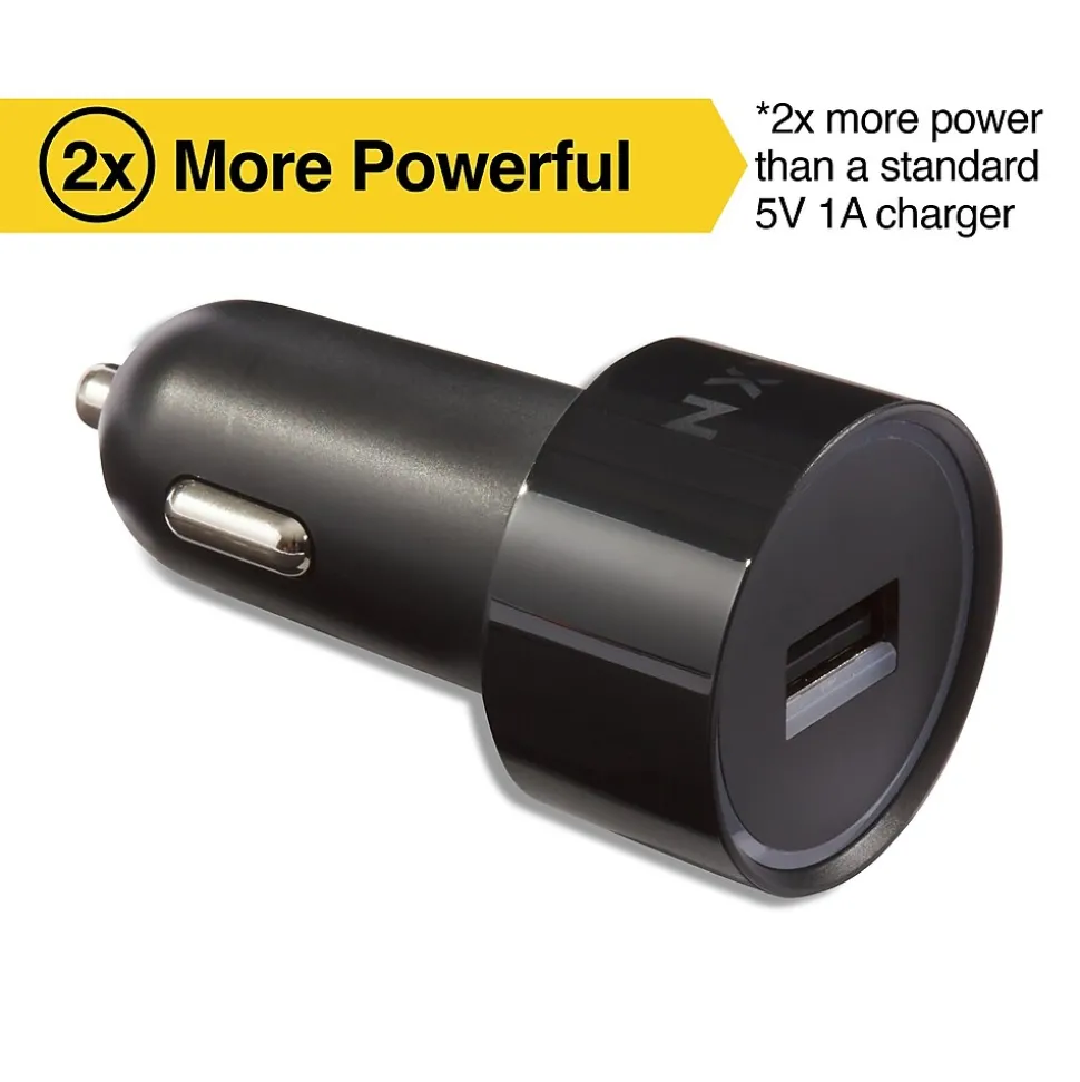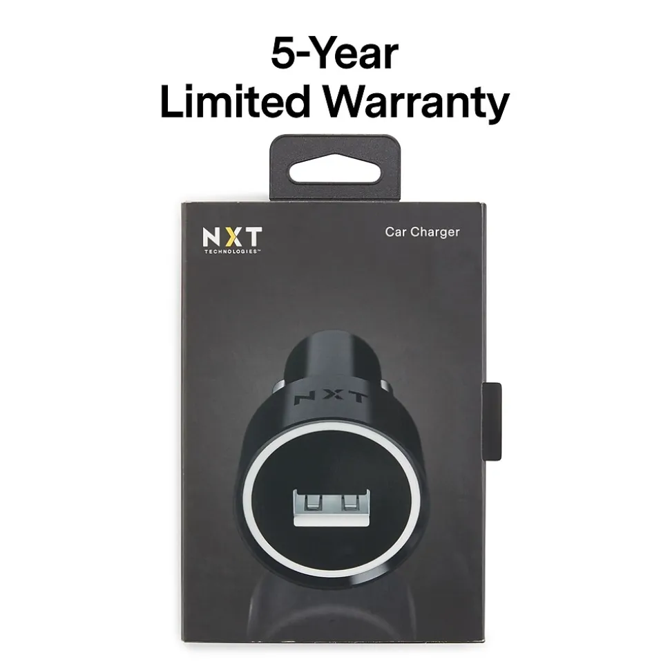 Connect tablets, smartphones, and other devices to this car charger for 12 watts of rapid charging. An illuminated port on this NXT Technologies™ one-port black car charger makes it easy to connect in the dark, while the compact design takes up little space.