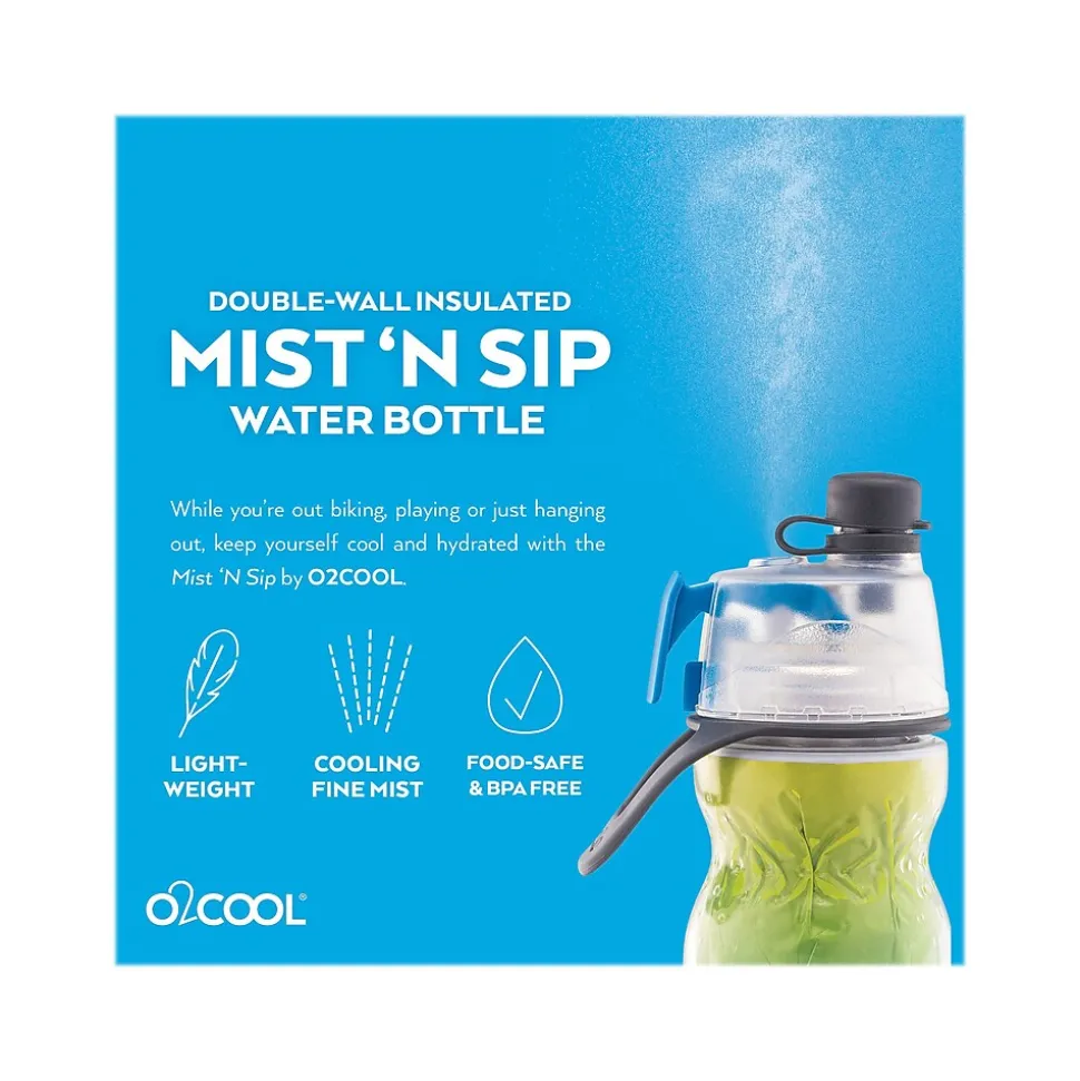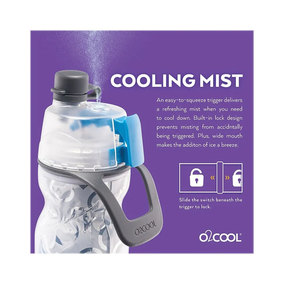 This O2COOL Mist ‘N Sip signature, patented misting water bottle with Elite low-profile top. Mist to cool you on the outside ‘N Sip to keep you hydrated on the inside. Double-wall construction eliminates sweating and keeps beverages cold up to 50% longer than single-wall bottles. Flexible and easy to squeeze. Built-in carry loop for easy transport. Fits most bicycle cages. The large opening makes it easy to fill with ice and water, while the easy-to-squeeze trigger delivers a refreshing mist when you need to cool down.