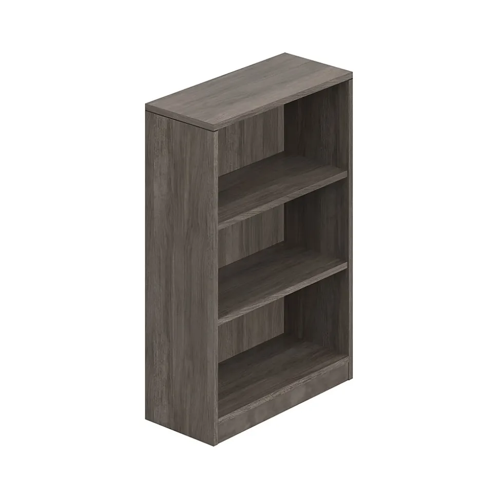 - Standard bookcase is made of laminate in artisan gray finish; comes with matching 3mm impact-resistant edges