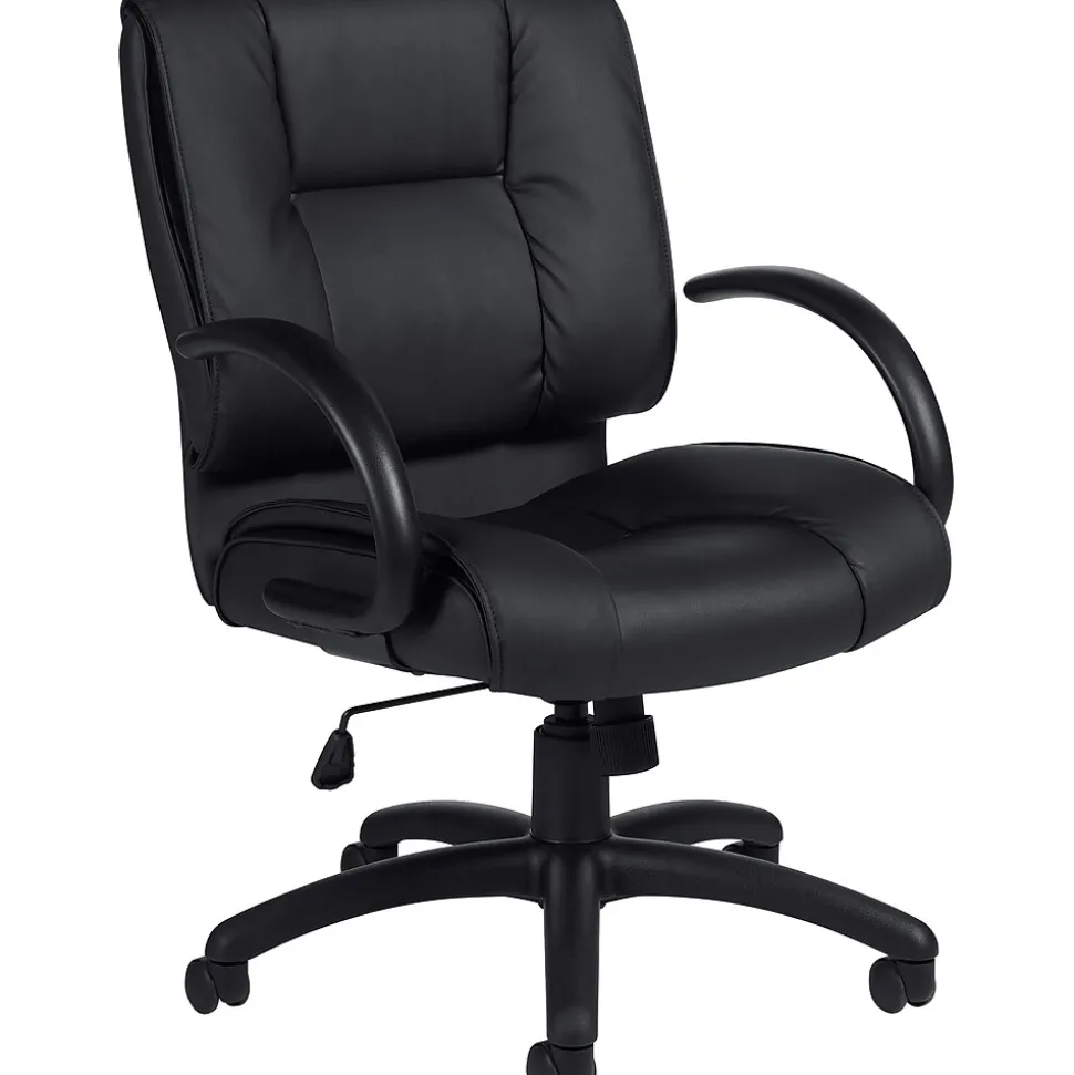 Mid-back chair with leather upholstery.