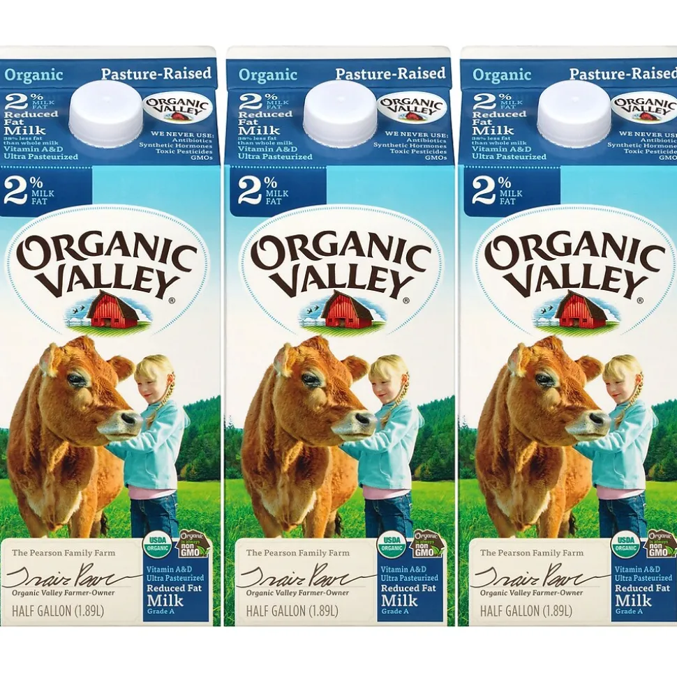 - A 3 pack of Organic Valley Reduced Fat 2% Ultra Pasteurized milk in 64oz cartons