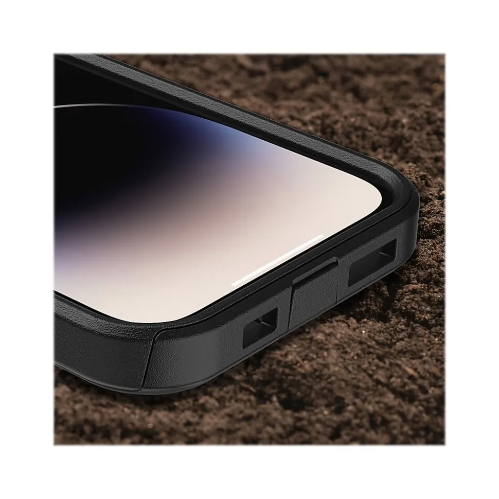 Get moving with OtterBox Commuter Series, the thin iPhone 14 Pro case that keeps your phone safe from drops and bumps. A silver-based antimicrobial additive is integrated into the case that helps inhibit microbial growth and defends the case exterior against many common bacteria. Wireless ready, it works with both Qi charging and MagSafe (no magnets in case). A pocket-friendly profile with robust defense and added grip combine to ensure you keep going mile after mile.