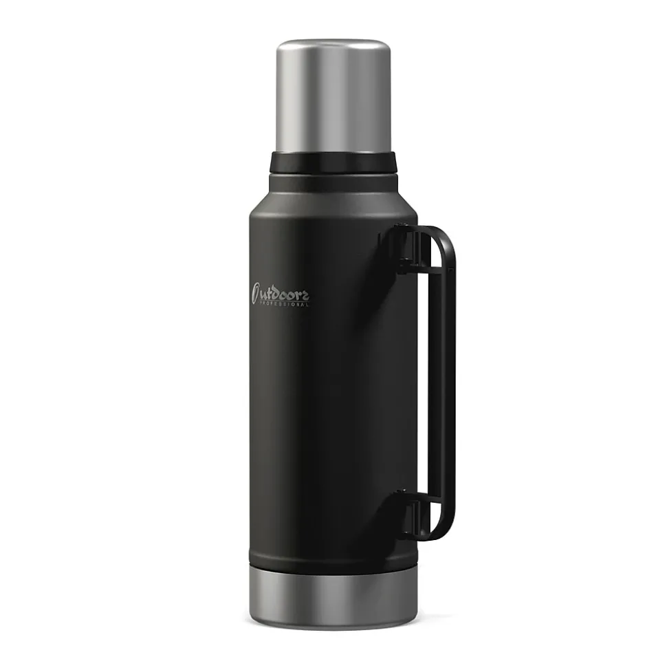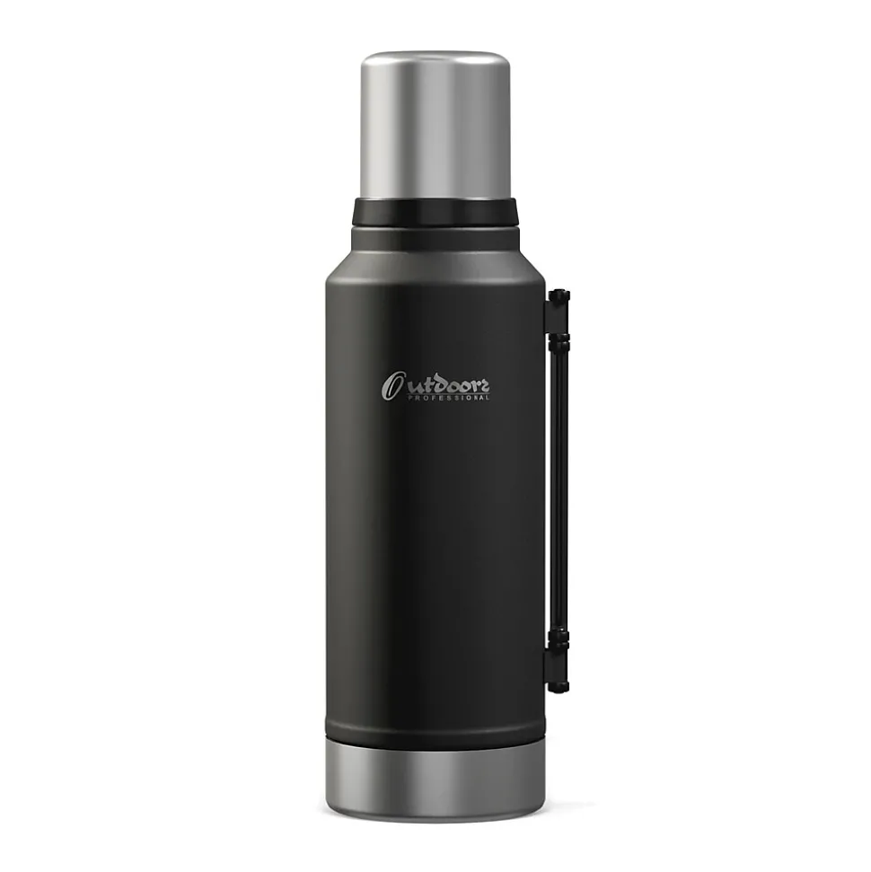 The Outdoors Professional Black 33.8-Oz. Termo Classic Vacuum Bottle with Carry Handle is made with superior insulation that keeps liquids (soup, coffee, tea) hot for up to 24 hours or cold drinks cool for up to 24 hours. Add ice to your favorite beverage and the Termo classic will keep it cold for up to 5 days. The rustproof stainless steel construction means it can work just as hard as you do without impacting its performance. This is an ideal bottle to throw in your truck, work bag, or travel with it. It’s made with BPA-free materials, keeping its contents safe to consume. This 1-L bottle features a leak-resistant lid, so you can put it in your backpack without worrying about any spills. The wide mouth opening helps with easy pouring into the lid that doubles as a cup. The collapsible handle makes it easy to transport when you’re on the go.