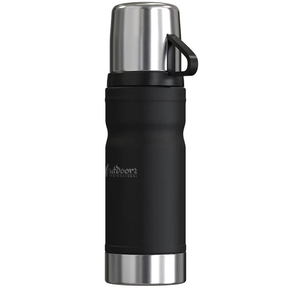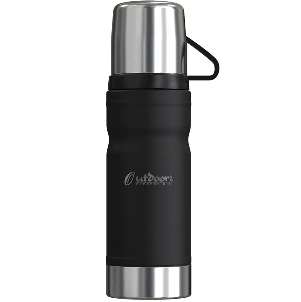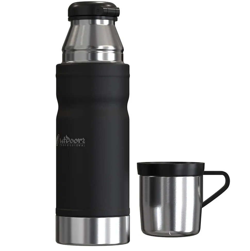 The Outdoors Professional Black Termo Classic Vacuum Bottle is made with superior insulation that keeps liquids (soup, coffee, tea) hot for up to 24 hours or cold drinks cool for up to 24 hours. Add ice to your favorite beverage and the Termo classic will keep it cold for up to 5 days. The rustproof stainless steel construction means it can work just as hard as you do without impacting its performance. This is an ideal bottle to throw in your truck, work bag, or travel with it. It’s made with BPA-free materials, keeping its contents safe to consume. This bottle features a leak-resistant lid, so you can put it in your backpack without worrying about any spills. The wide mouth opening helps with easy pouring into the lid that doubles as a cup. The collapsible handle makes it easy to transport when you’re on the go.