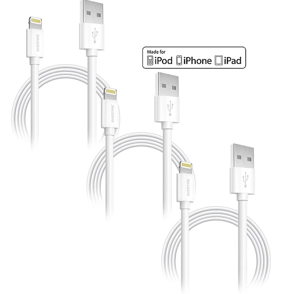 Sync and charge no matter where you are with these Lightning cables, which have a standard USB interface that enables connectivity to computers, laptops, wall outlets, and car chargers. This three-pack of white 4-foot Delton Overtime Apple Lightning cables is compatible with most iPhone, iPad and iPod models.