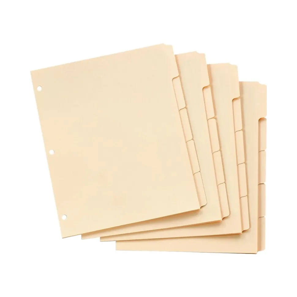 - Five tab dividers per set, 20 sets per box, 100 total tab dividers per box