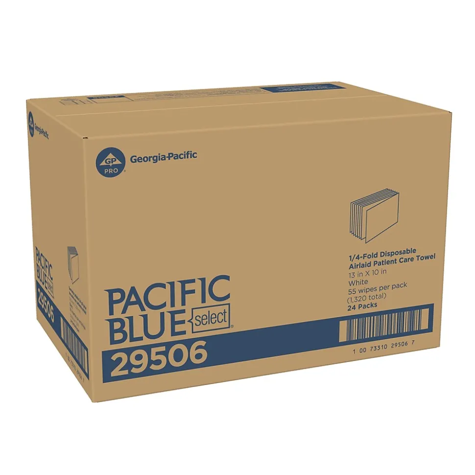 Pacific Blue Select disposable patient washcloths are made from air-laid bonded cellulose to deliver exceptional capacity for tackling spills or for patient care as a disposable washcloth. This cost-effective wiper even stands up in light solvents to make cleaning a breeze. Popular uses include patient care (washcloths), healthcare, and light manufacturing cleaning tasks. These economical light-duty wipes feature a 0.25 fold design that provides fast dispensing for one or more wipers at a time and come in protective poly packaging.