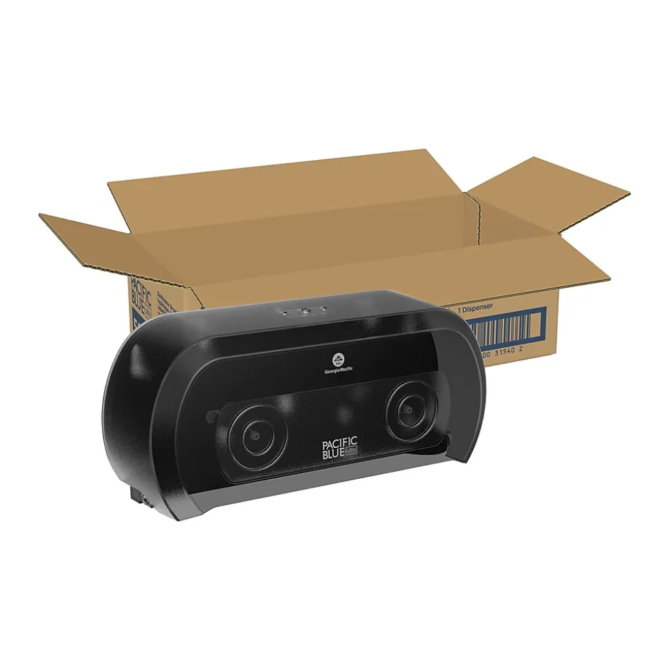 The Pacific Blue Ultra® 2-Roll Coreless Toilet Paper Dispenser complements the existing 4-Roll High-Capacity dispenser (56602A), allowing for lower capacity tissue where needed. This dispenser holds two Pacific Blue Ultra® Coreless 2-Ply Toilet Paper rolls which feature 94% less packaging compared to GP 2-Ply Jumbo Roll Tissue 12 roll case, eliminating cardboard cores and the outer carton. This dispenser and tissue combination helps improve the restroom experience while reducing maintenance time, storage space, waste, and costs.