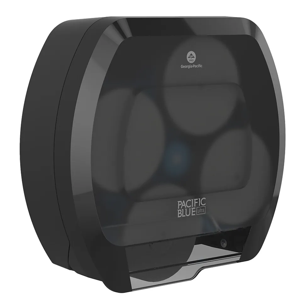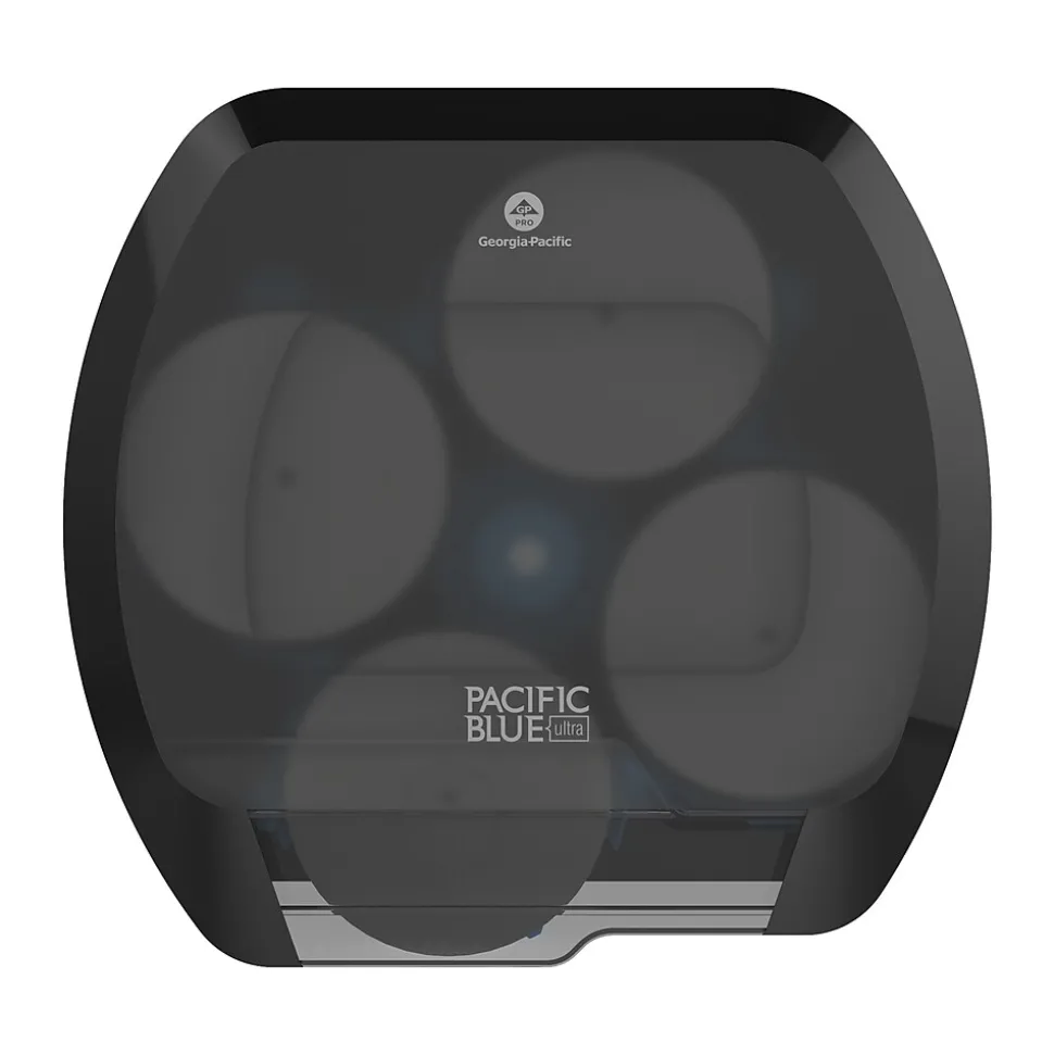 The Pacific Blue Ultra coreless toilet paper dispenser helps improve the restroom experience, reduce maintenance, run-outs, and waste, which can help save money and storage space. It holds four jumbo rolls of coreless toilet paper to help minimize the need for maintenance and keeps them covered until use, for a more hygienic dispensing system. And because this commercial toilet paper dispenser uses 99% of the roll before moving to the next one, it can help reduce waste and costs.