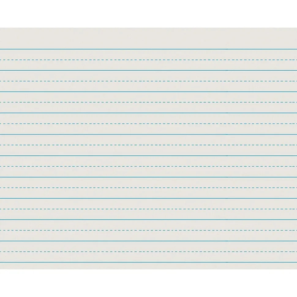 PaconĀ® Newsprint paper for grade 2nd measuring 11″ x 8 1/2″ features 3/4″ light blue ruling on both sides. Paper includes alternative dotted midline that serves as a guide for controlled writing.