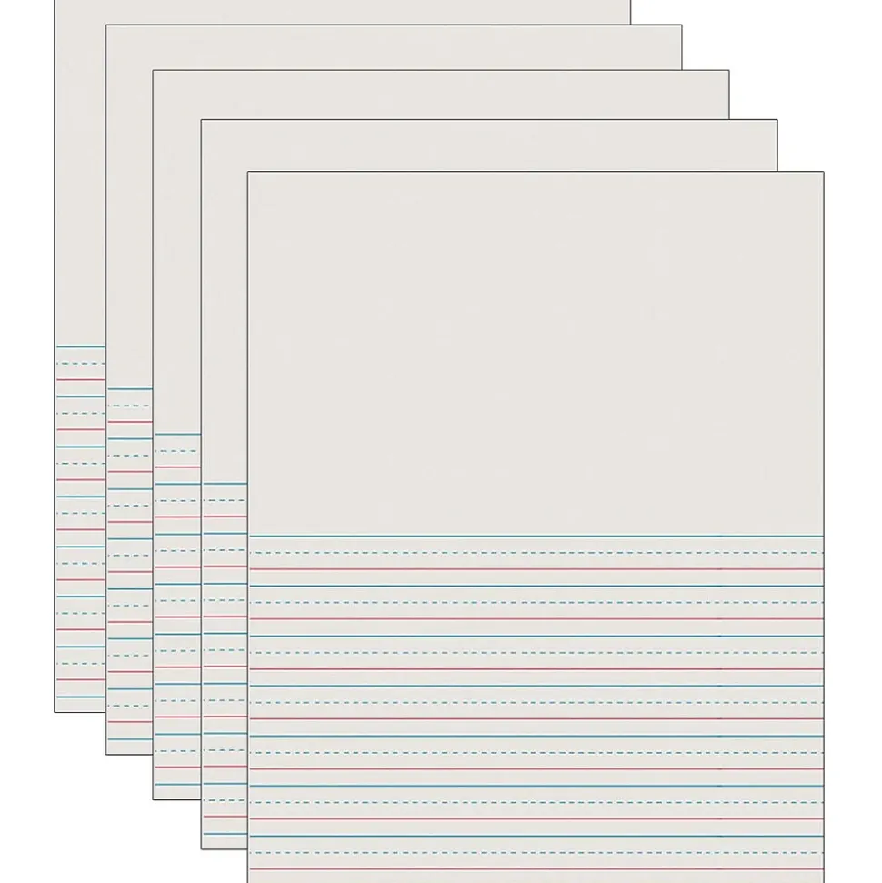 Clean White newsprint paper printed on both sides with a red baseline and a dotted blue midline, making it easy for students to find the headline quickly and easily. It’s also great for tracking students’ handwriting progress over time, and helps build a solid foundation for students to write legibly and communicate effectively through writing. Ruling conforms to D’Nealianâ„¢ handwriting program. Package contains 500 sheets. Measures 8.5″ x 11″. Recyclable. Sold as a set of 5 packs, 2500 sheets total.