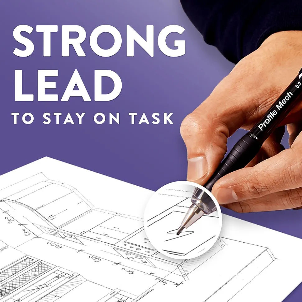 Paper Mate Profile Mech mechanical pencils combine the look and feel of a pen with the performance and versatility of a pencil, so you stay sharp during any writing task. They feature a comfortable grip that helps you keep writing until the job is done. These pencils contain 0.7mm HB #2 pencil lead, making them great for school, home, or the office and perfect for standardized testing.