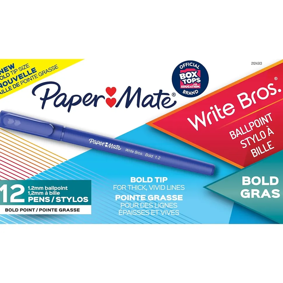 With ultra-low-viscosity ink in a bold tip size, Paper Mate Write Bros. ballpoint pen delivers smooth writing for any occasion. A long grip zone and thick barrel bring you a soft feel for all-day writing. With a premium look and feel, this Paper Mate ballpoint pen is perfect for home, school, or office.