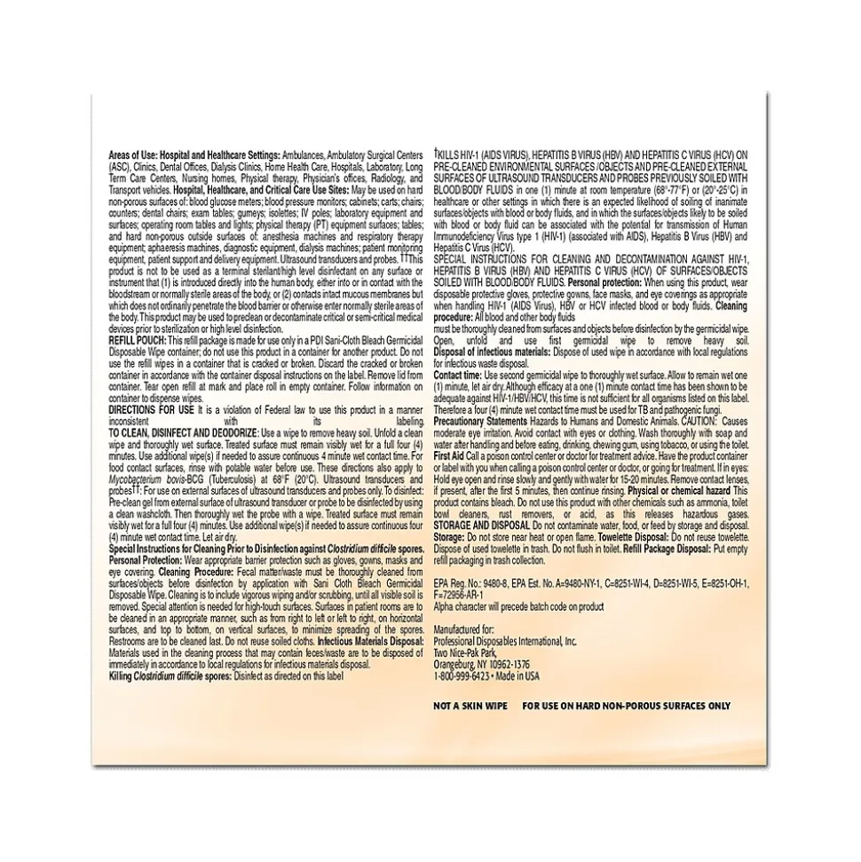 The PDI Sani-Cloth disposable germicidal wipes are effective against 50 microorganisms in 4 minutes. Perfect for disinfecting high-risk areas contaminated with Clostridioides difficile (C. difficile or C. diff.) spores and norovirus. Now effective against SARS-CoV-2, the virus that causes COVID-19.