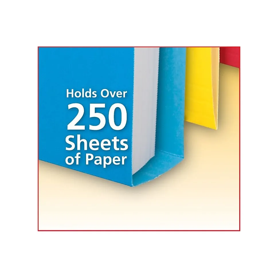 Pendaflex Double Stuff File Folders expand up to 1.5″ for large files or for use in box-bottom hanging file folders, with twice the capacity of standard folders that helps to organize files. Assorted colors (blue, red, green, yellow, orange) are perfect for color coding. Letter size, assorted colors. 24/Pack
